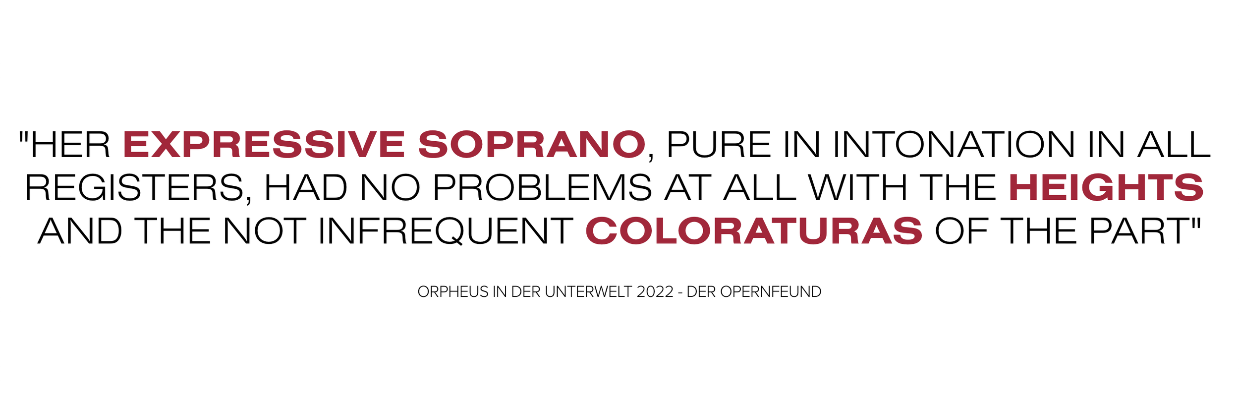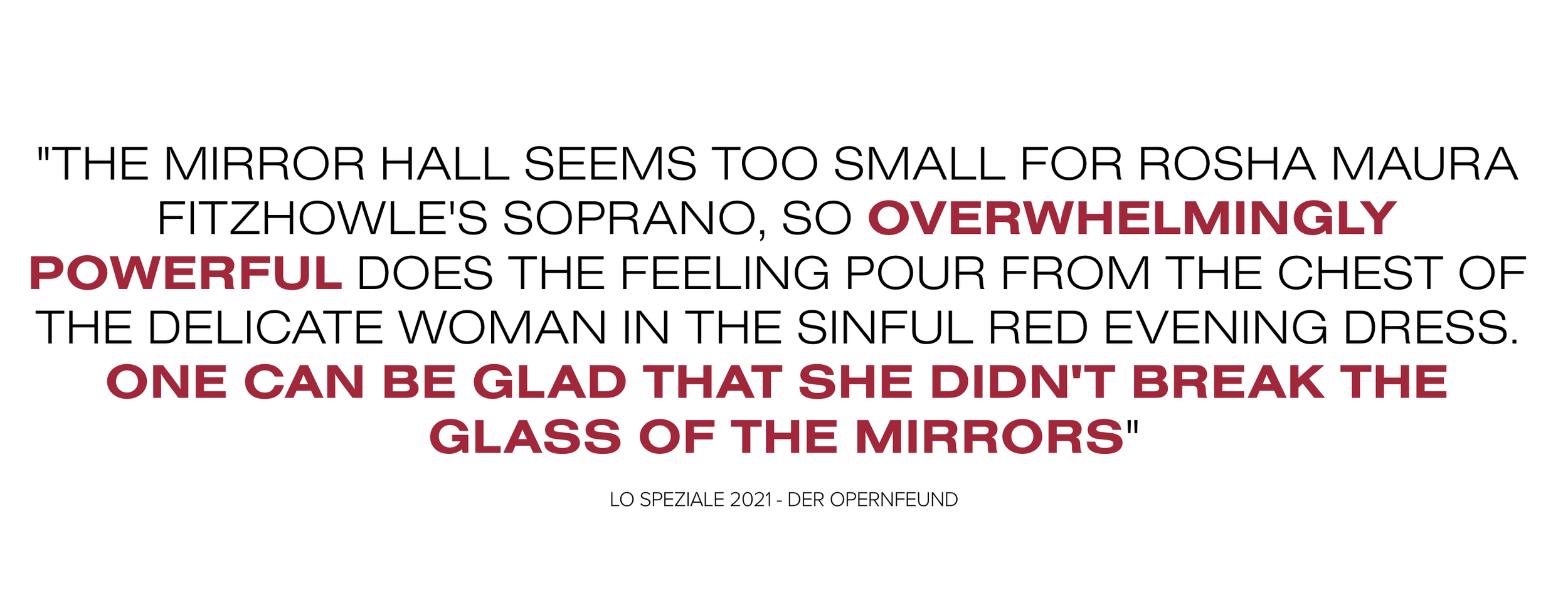 As of the season 22/23 the Scottish Soprano Rosha Maura Fitzhowle is a member of the Ensemble of Theater Magdeburg, where she sings the roles of Eurydice (Orpheus in der Unterwelt), Adina (L’elisir d’amore), and Agathe (Der Freischutz) in her first season. In the 22/23 season Rosha will also repeat her Johanna (Sweeney Todd) in Theater Aachen. In October of 2022 Rosha was honoured by the city of Düsseldorf in a ceremony with the Mayor, and was recipient of the annual Prize of Music, recognising her contributions in the field in the city and country. (2022 Förderpreis für Musik der Landeshauptstadt Düsseldorf).